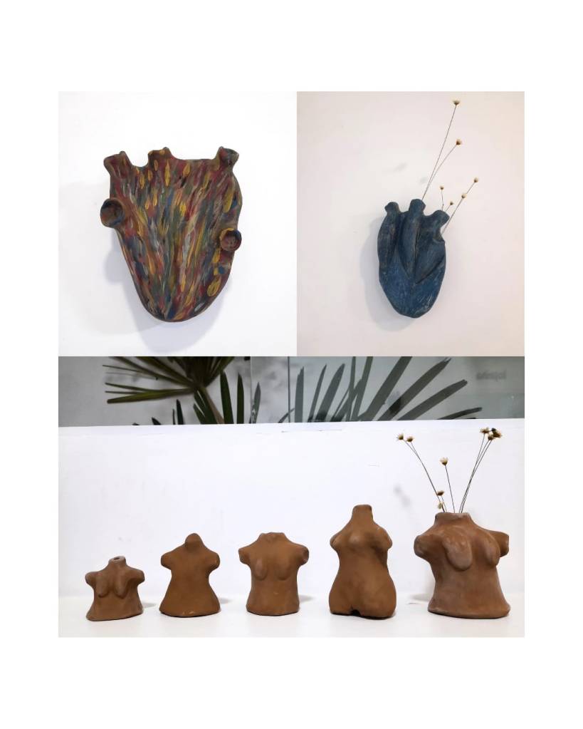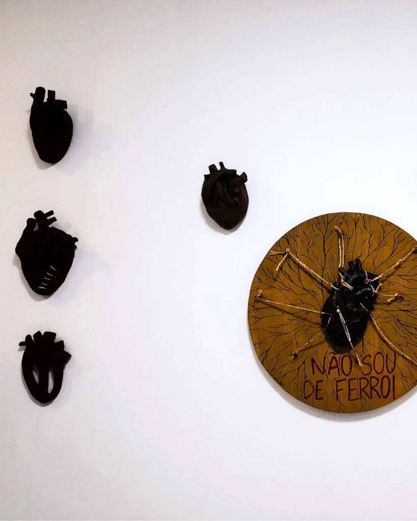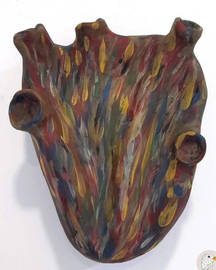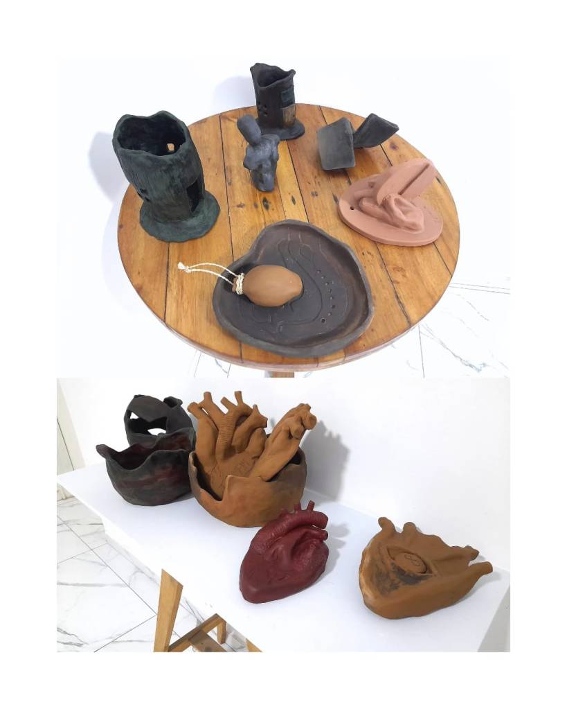 A relação que podemos fazer com a obra “Perto do Coração Selvagem” – o atravessamento por uma identificação com a experiência de Joana: um sujeito em construção, em ruptura com o Outro, tateando os contornos do próprio eu. A matéria (barro, textura, dureza) tornou-se um campo de inscrição desse percurso subjetivo. O coração não como um órgão, mas como signo do gozo, daquilo que pulsa fora da norma.